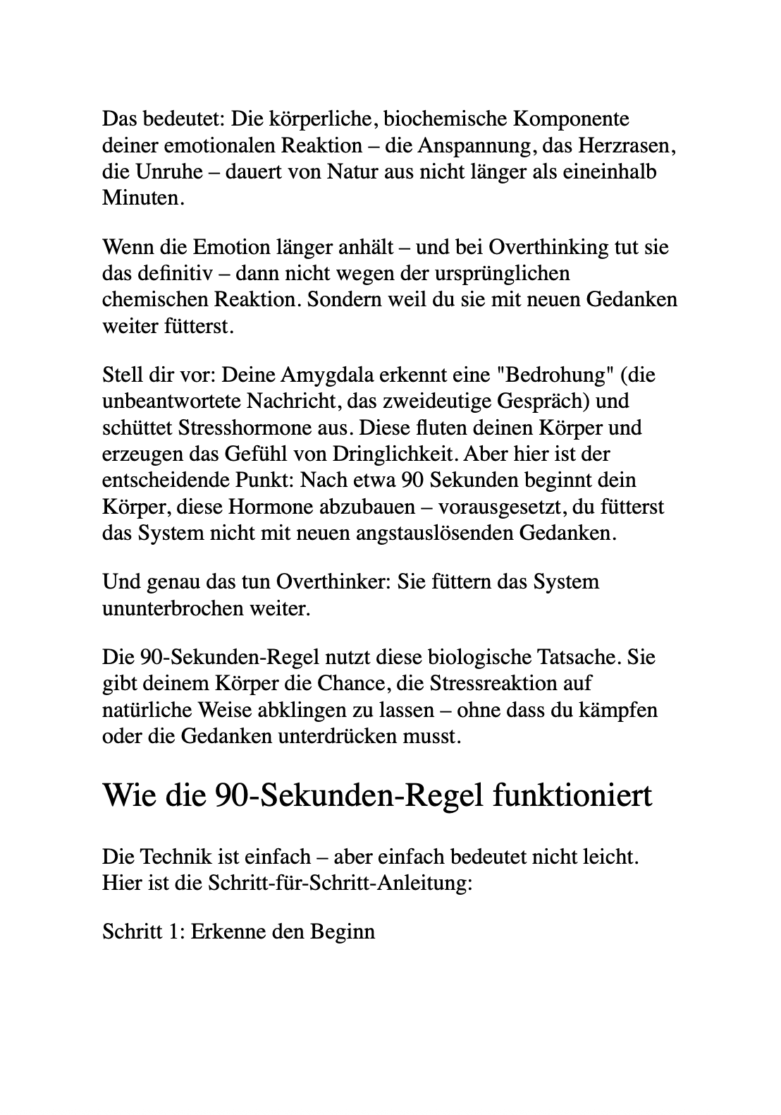 Dieses Buch erklärt verständlich und ohne zu vereinfachen, warum Overthinking kein persönliches Versagen ist, sondern ein erlerntes Schutzmuster deines Gehirns. Ein Muster, das einst sinnvoll war – und dich heute ausbremst. Und vor allem zeigt es dir, wie du dieses Muster Schritt für Schritt verändern kannst.