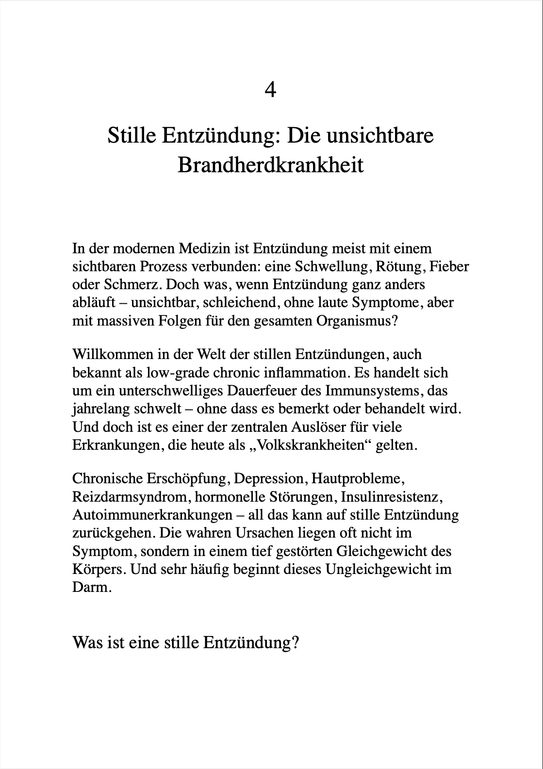 Dieses Buch deckt die verborgenen Ursachen auf, die moderne Medizin noch immer übersieht. Es erklärt klar und verständlich, warum selbst „gesunde Ernährung“ krank machen kann, was stille Entzündungen in deinem Körper wirklich anrichten und wie du Schritt für Schritt deinen Darm regenerierst und deine Energie zurückgewinnst.