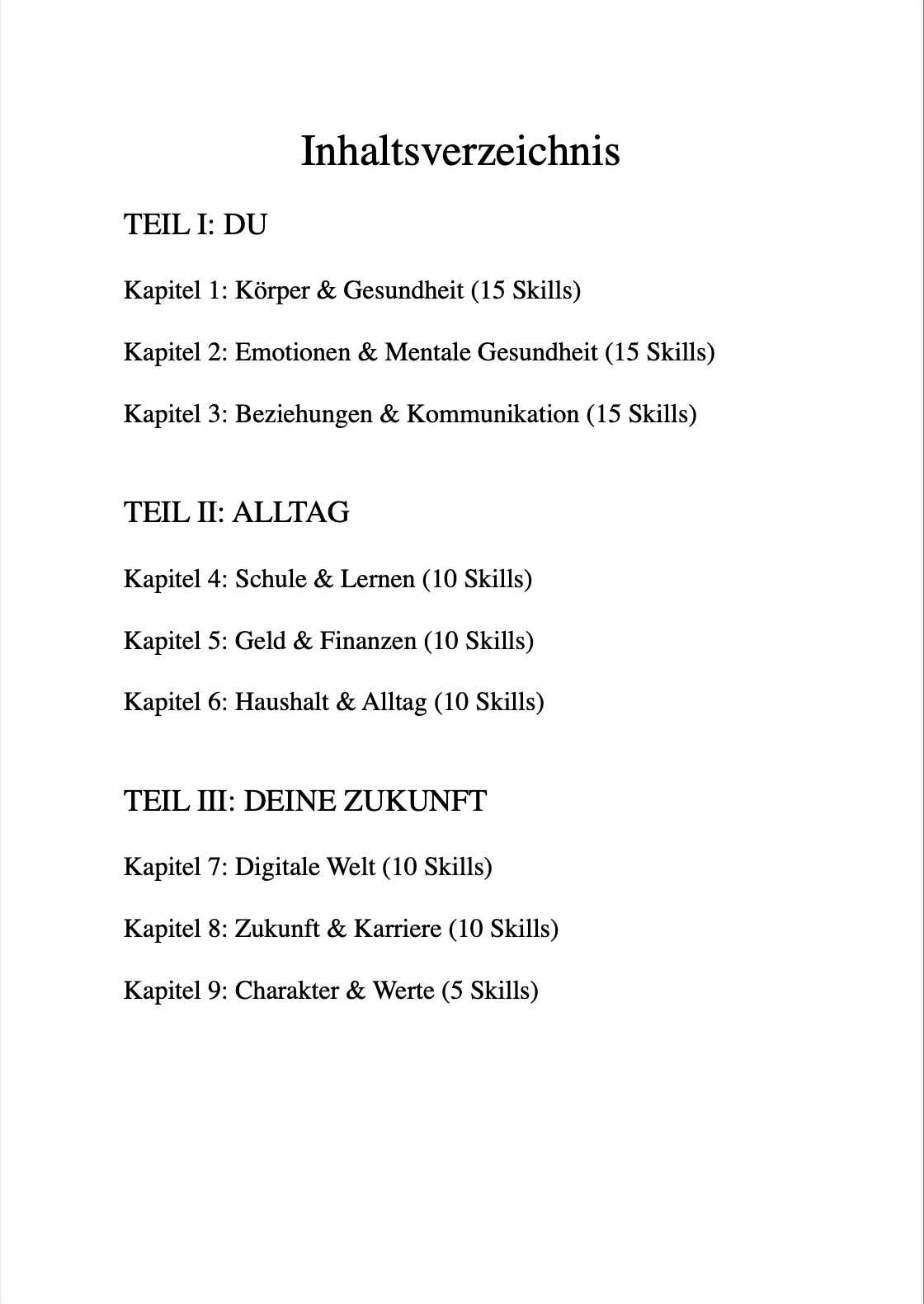 Stattdessen: 100 konkrete Life Skills, die deinem Sohn helfen, Schritt für Schritt Verantwortung für sich selbst zu übernehmen.